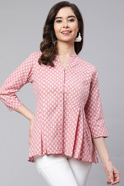 Pink Woven Printed Pleated Top